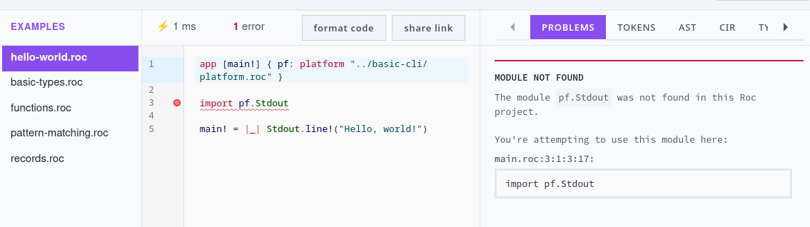 Hey there, I wanted to play with the playground just now, but found out that two of the examples are brokeb: