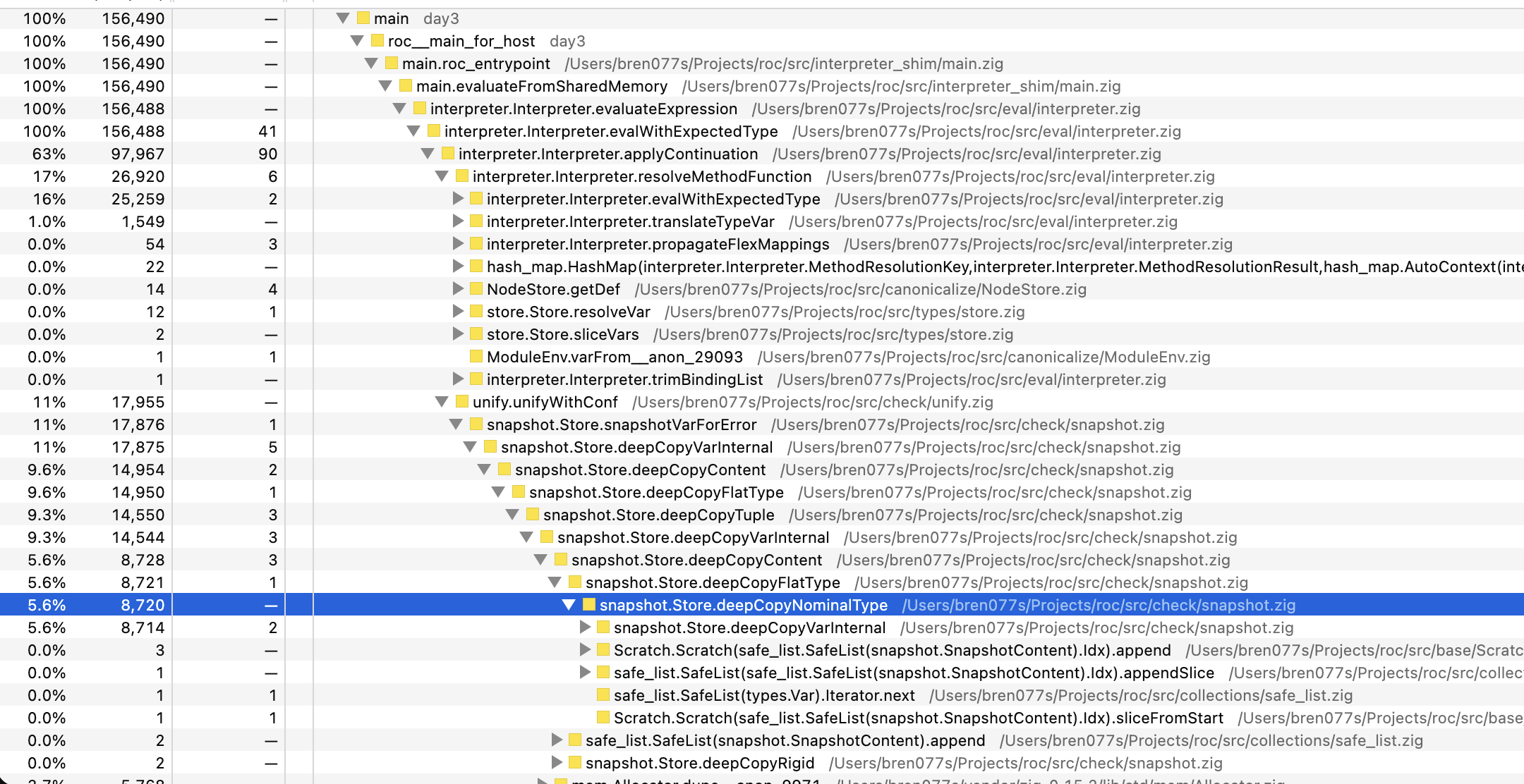 Testing more than two runs made no difference on either machine. Used #8681, ran git clean -dfx before building, built with zig build roc -Doptimize=ReleaseFast. Roc source and input file from https://roc.zulipchat.com/#narrow/channel/358903-advent-of-code/topic/2025.20Day.203/near/563633329.