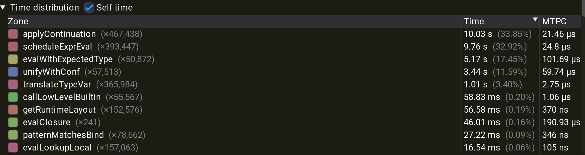 Definitely the first place to look would be applyContinuation which seems to have a lot of cost within itself.