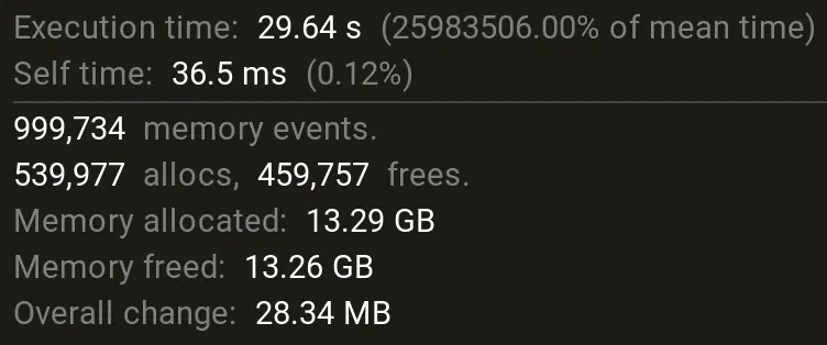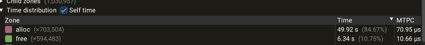 Yeah, clearly the issue is allocations. Look at the time spent in the allocator alloc function: