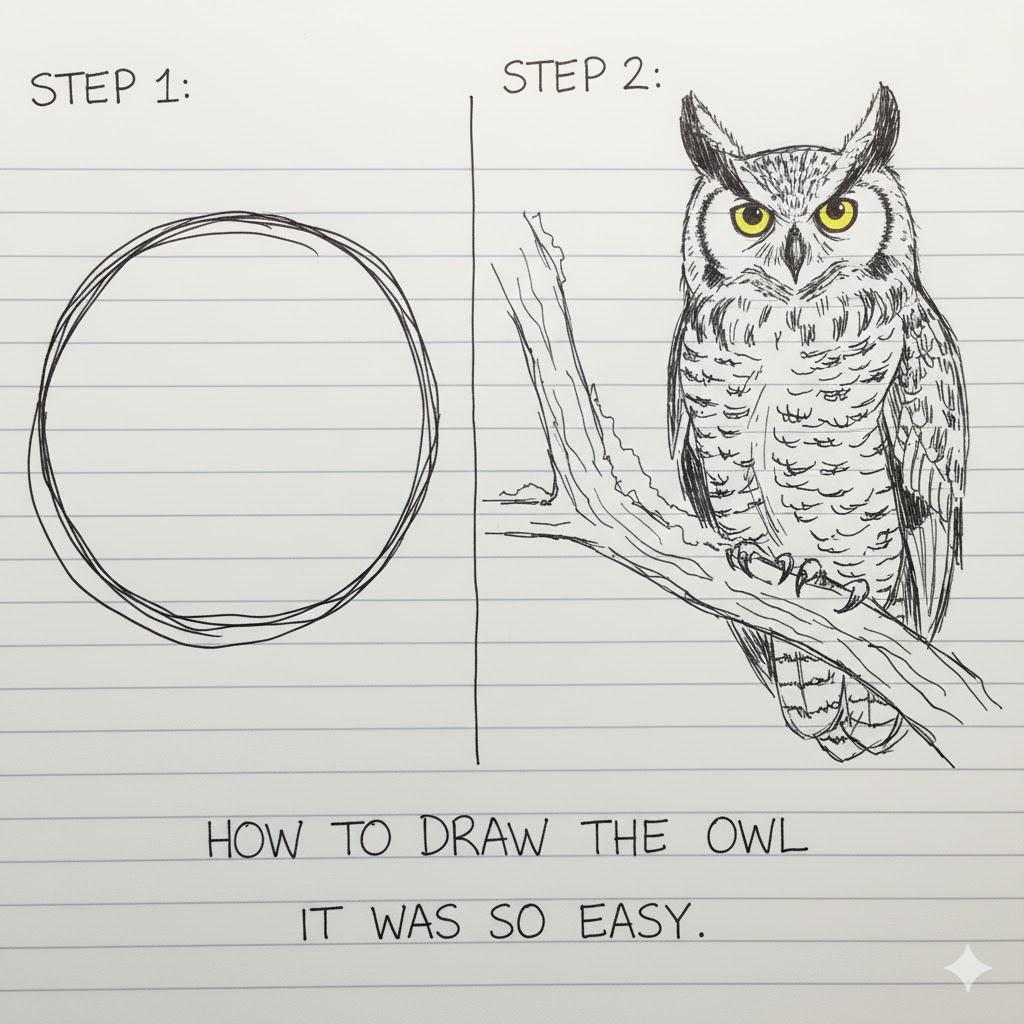 I can't just be like "hey Claude, draw the owl" - that will end in disaster